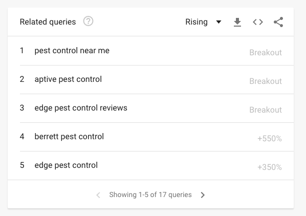 For example, if you offer pest control services in Colorado, a lot of the search queries are asking for reviews of local companies.
