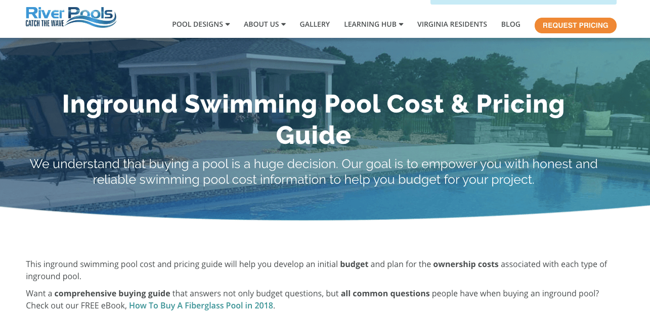 Virginia-based River Pools does this perfectly, with an in-depth buying guide for inground pools.