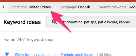 Now, we can narrow down the location. Click on the locations tab in the upper left-hand corner of the ‘Keyword ideas’ page.