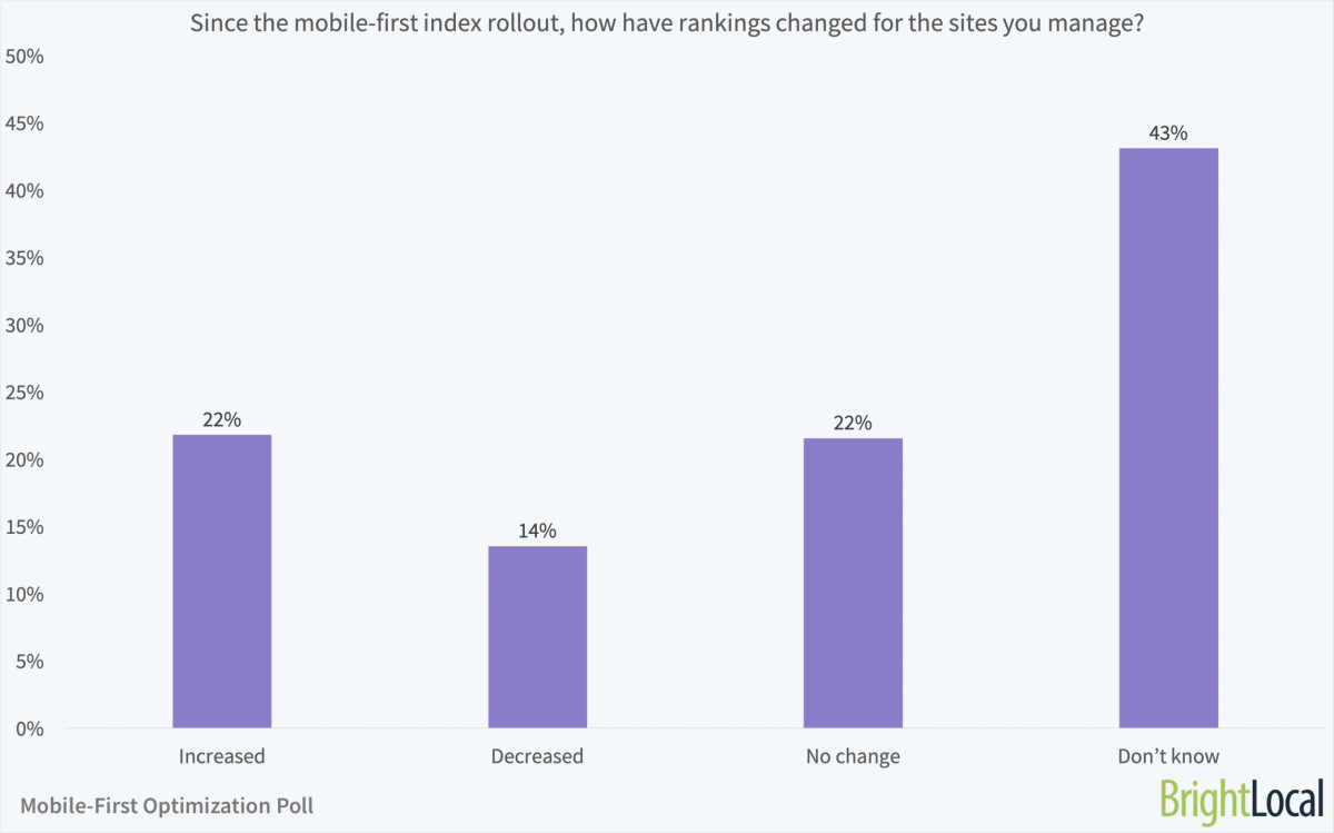 - 22% have seen improved rankings since the mobile-first index rollout, while 14% have seen drops