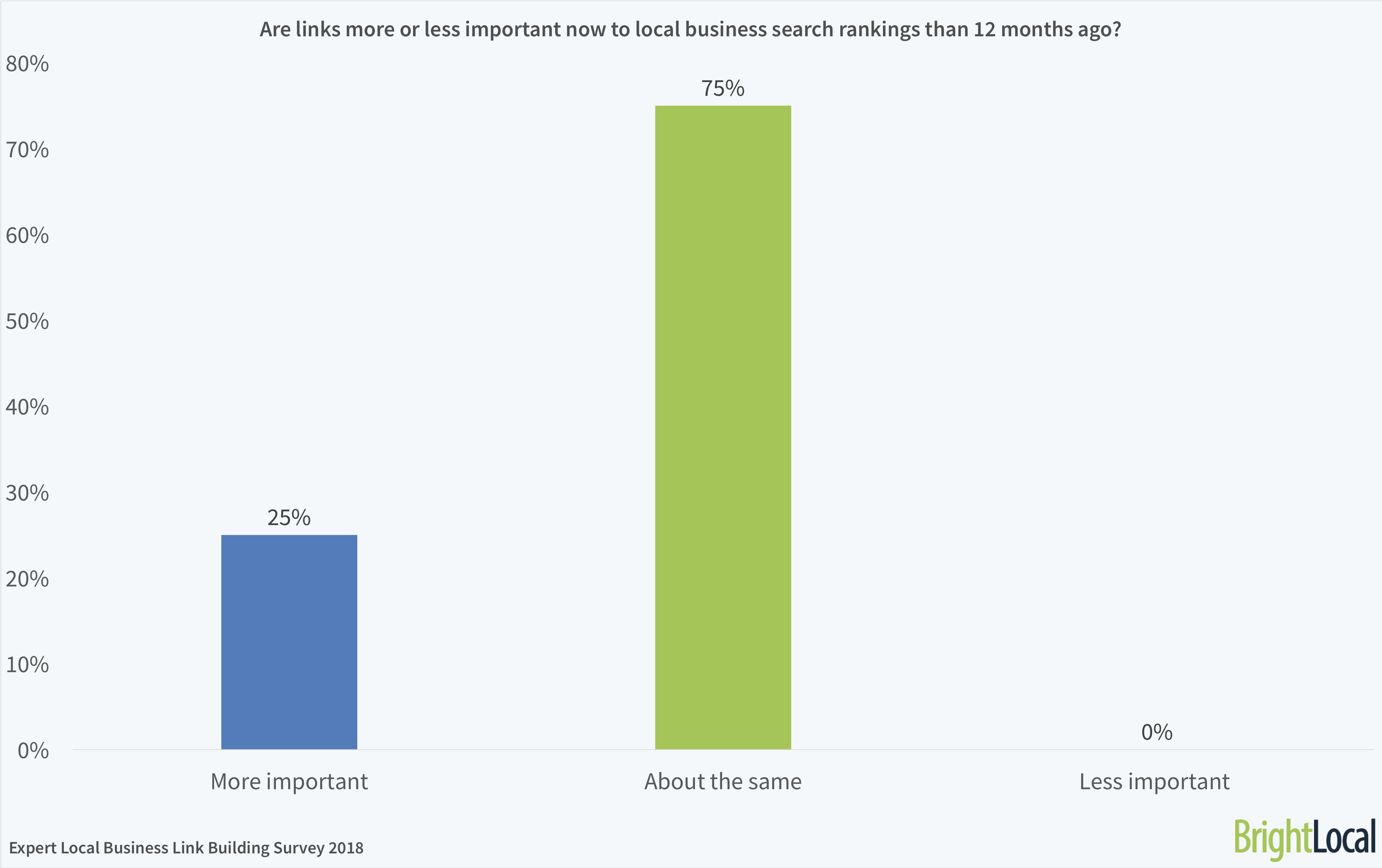 25% of local SEO experts believe links are more important to local business search rankings than they were a year ago