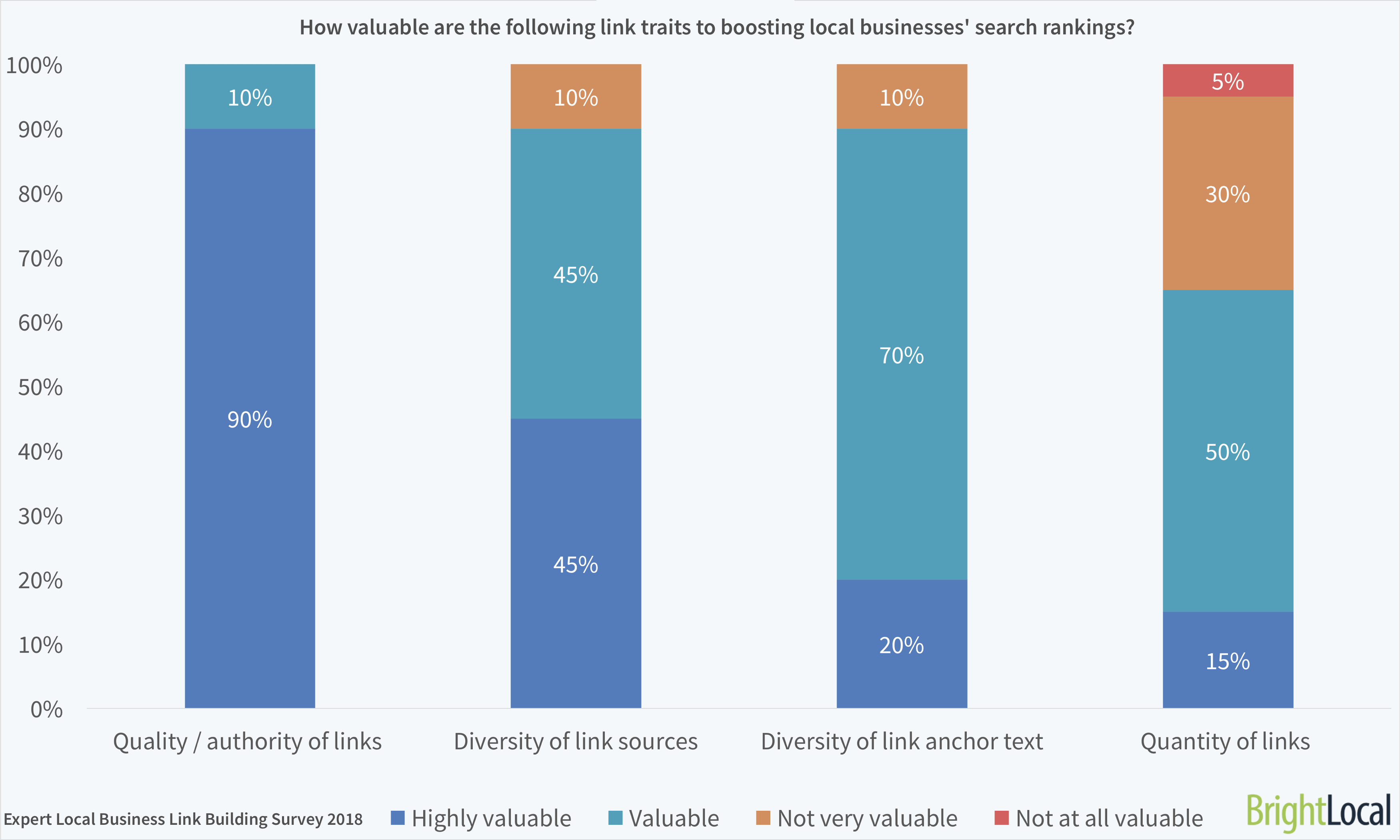 - Quantity of links was seen as the least valuable – with 65% naming it as valuable or highly valuable – and 5% saying this isn’t valuable at all