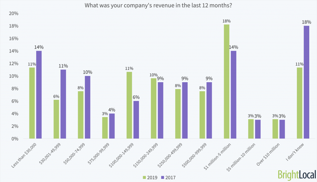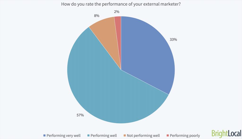 It’s important to note that this study was primarily answered by BrightLocal’s audience, targeted via email and social channels, with a smaller reach beyond this to local marketers. Therefore, respondents may be a little more likely than the norm to handle marketing themselves.