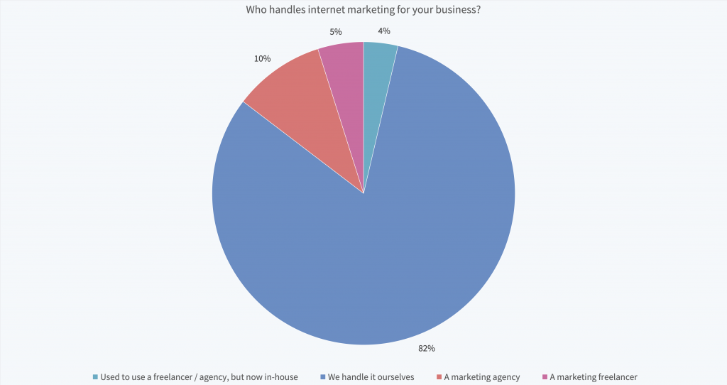 Most of the local business marketers in our study handle internet marketing in-house, with just 15% using a freelancer or agency.